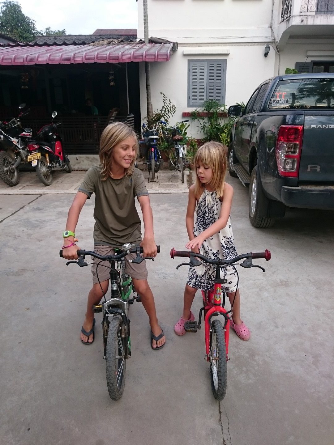 Et ce qui était très chouette, c’est que cette guesthouse est tenue par une famille laotienne, avec laquelle nous avons pu partager un peu du quotidien une semaine durant. Nous avons vu les enfants partir à l’école en costume tous les matins; les femmes de la famille partir au marché en scooter et revenir avec tellement de sachets qu’on ne voyait plus leur tête; les enfants ont bien joué et ri tous ensemble; et il y avait des touristes solitaires présents pour de longues périodes, ce qui rajoutait encore à l’ambiance familiale de l’endroit.