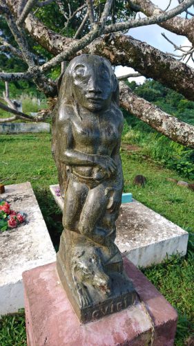 et sous la bonne garde d’un bronze d’Orivi, déesse tahitienne de la mort qui avait été réalisée par Paul Gauguin en 1894 et dont l’original (en grès) est exposé au Musée d’Orsay à Paris.