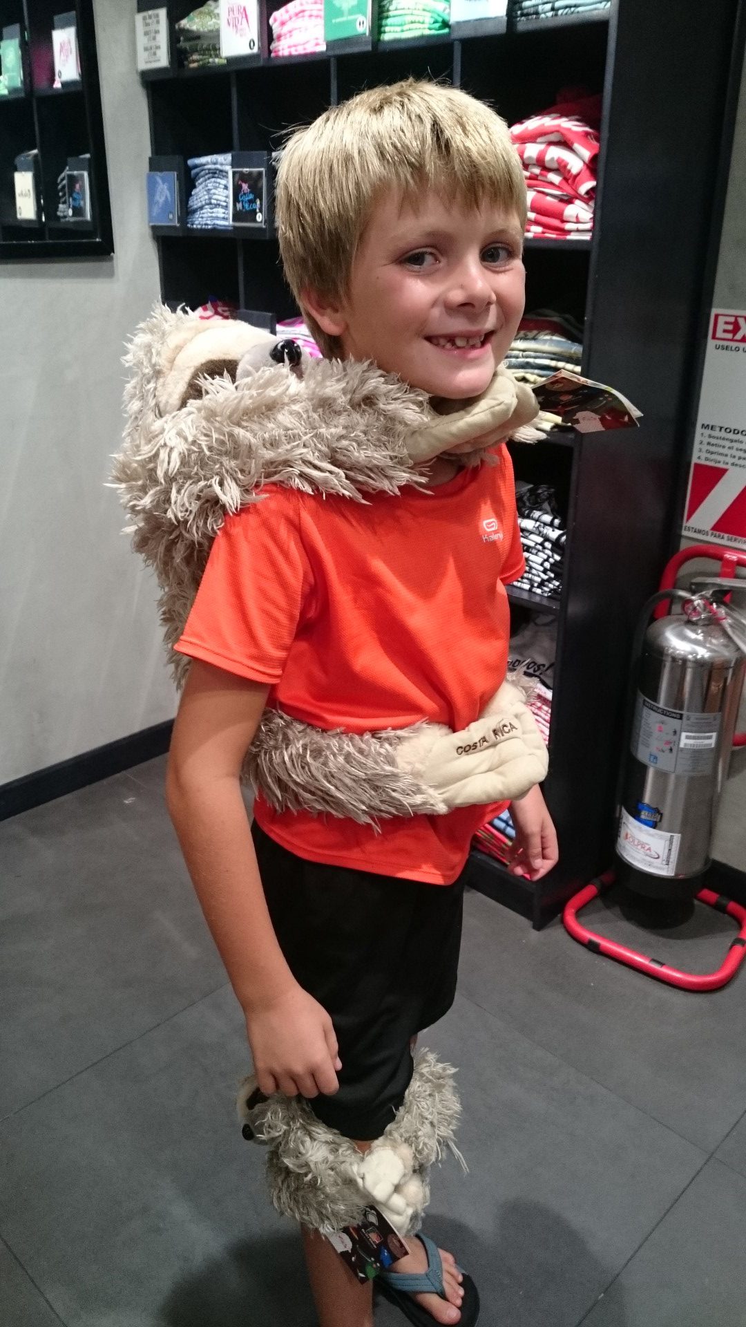 Le premier vol s’est passé sans problème jusqu’à San José, on a profité de l’escale pour aller acheter quelques trucs à grignoter et faire le tour des poupées et peluches des magasins de la zone de transit :