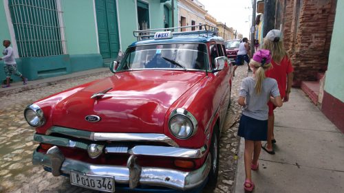 Le prix d’une voiture « récente » (Peugeot 405 break ou kia citadine) avec une brouette de kilomètres au compteur (plus de 200’000) : plus de 40’000 chf ! Une voiture citadine neuve : de 70’000 à 120’000 chf ! Et une ancienne américaine : 15’000 chf (car là, il n’y a pas de taxe d’importation que le gouvernement applique à outrance sur les voitures neuves). Sachant qu’un dentiste (payé par l’état) gagne ici 20 chf / mois et qu’un instituteur gagne 32 chf / mois, on comprend que les Cubains ont appris à bricoler et à réussir à faire rouler leurs vieilles voitures US jusqu’à maintenant.